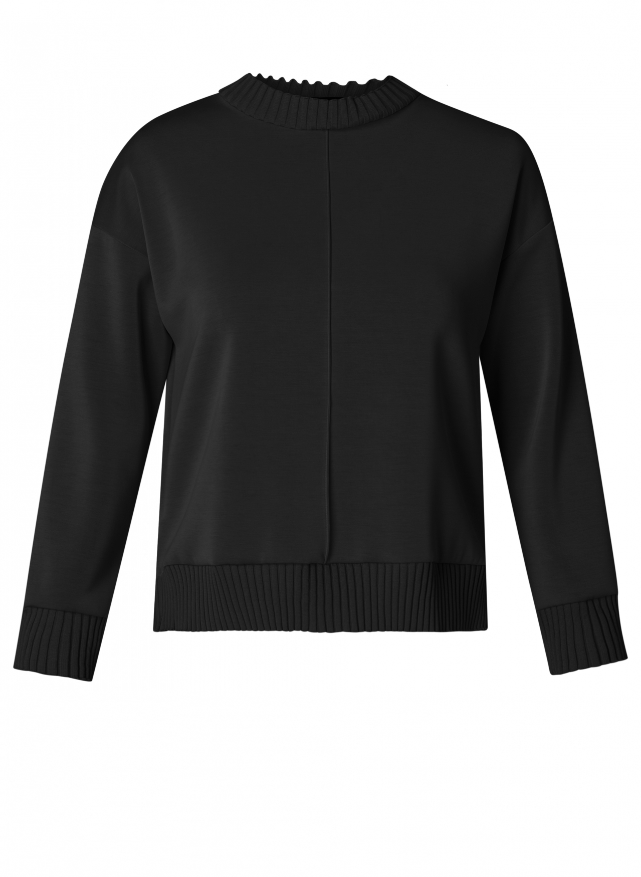 Yest pullover top is made of a buttery soft scuba knit fabric that’s comfortable so comfy. Top has long sleeves with a knit rib trim at neckline and cuffs. Machine washable. Stylishly casual.